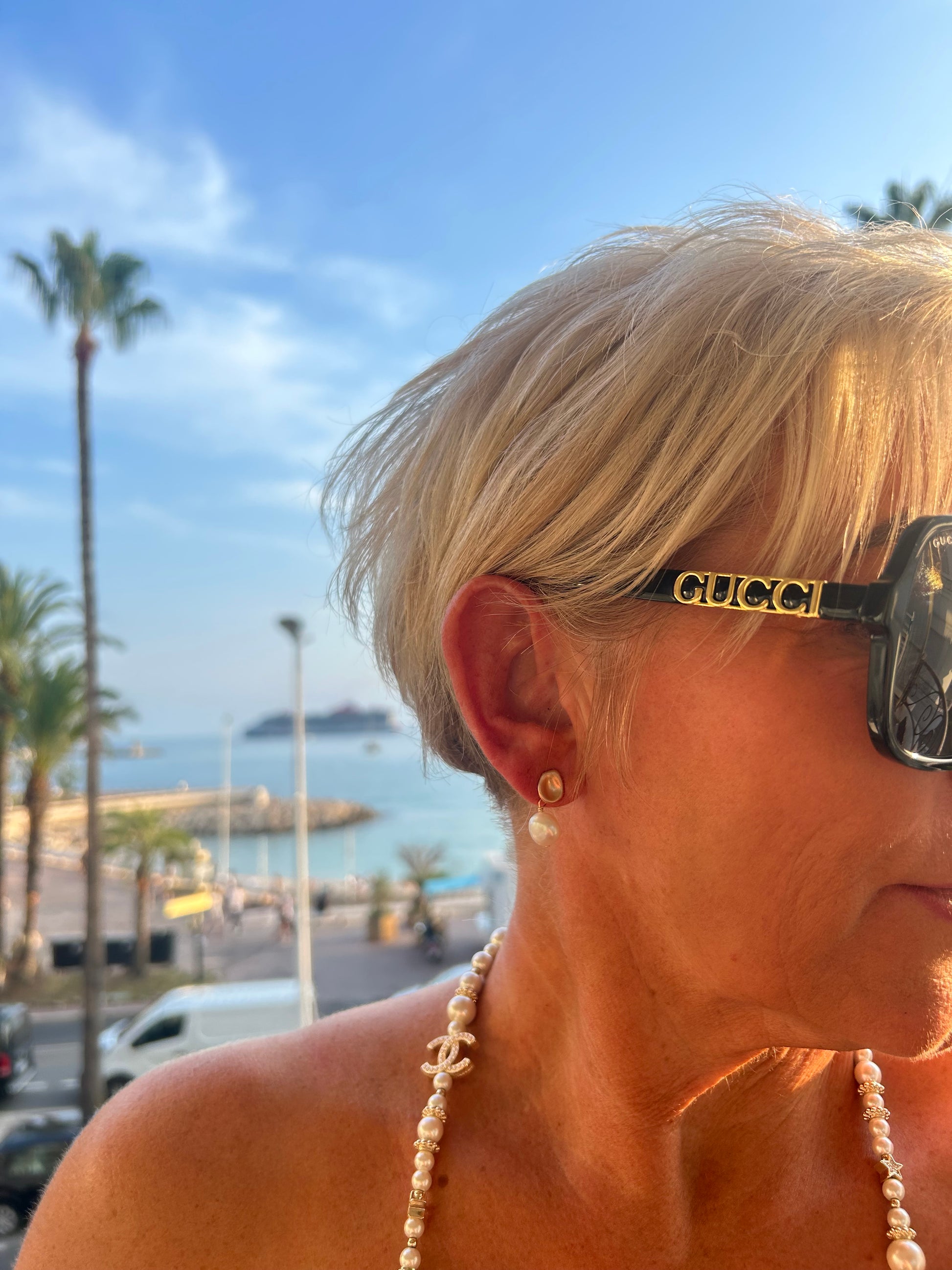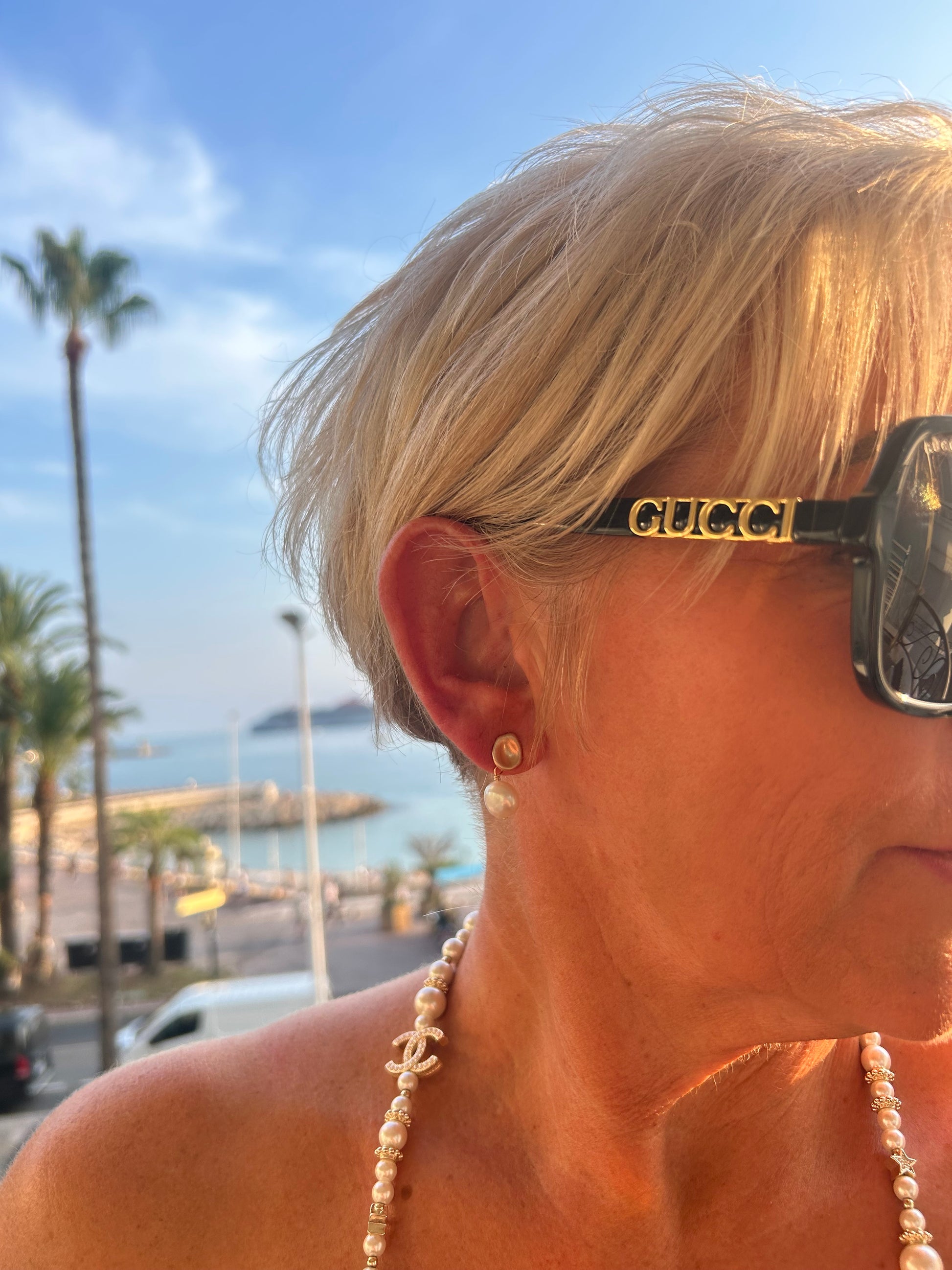 - Rose gold base with pearl droplet detail.