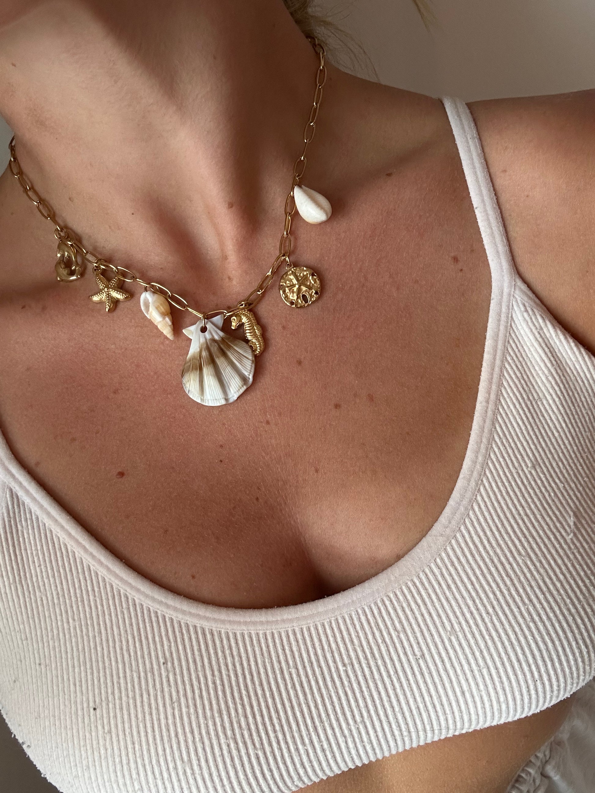 Brown & Cream shell chain necklace
